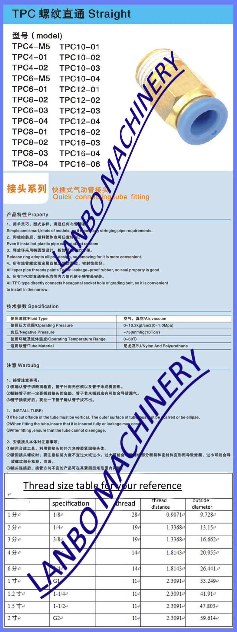 PC4-02 quick connecting tube fitting Images |
